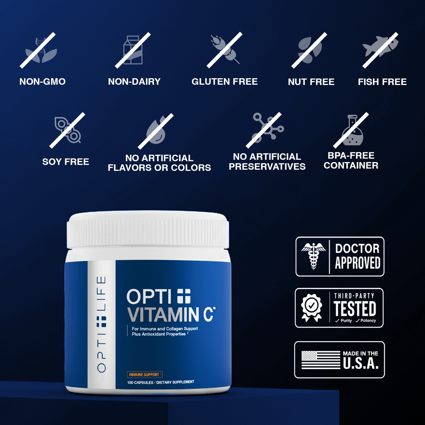 OPTI + VITAMIN C™ is tested by third-party labs for heavy metals, microbes, allergens, and other contaminants to ensure it meets FDA purity standards.