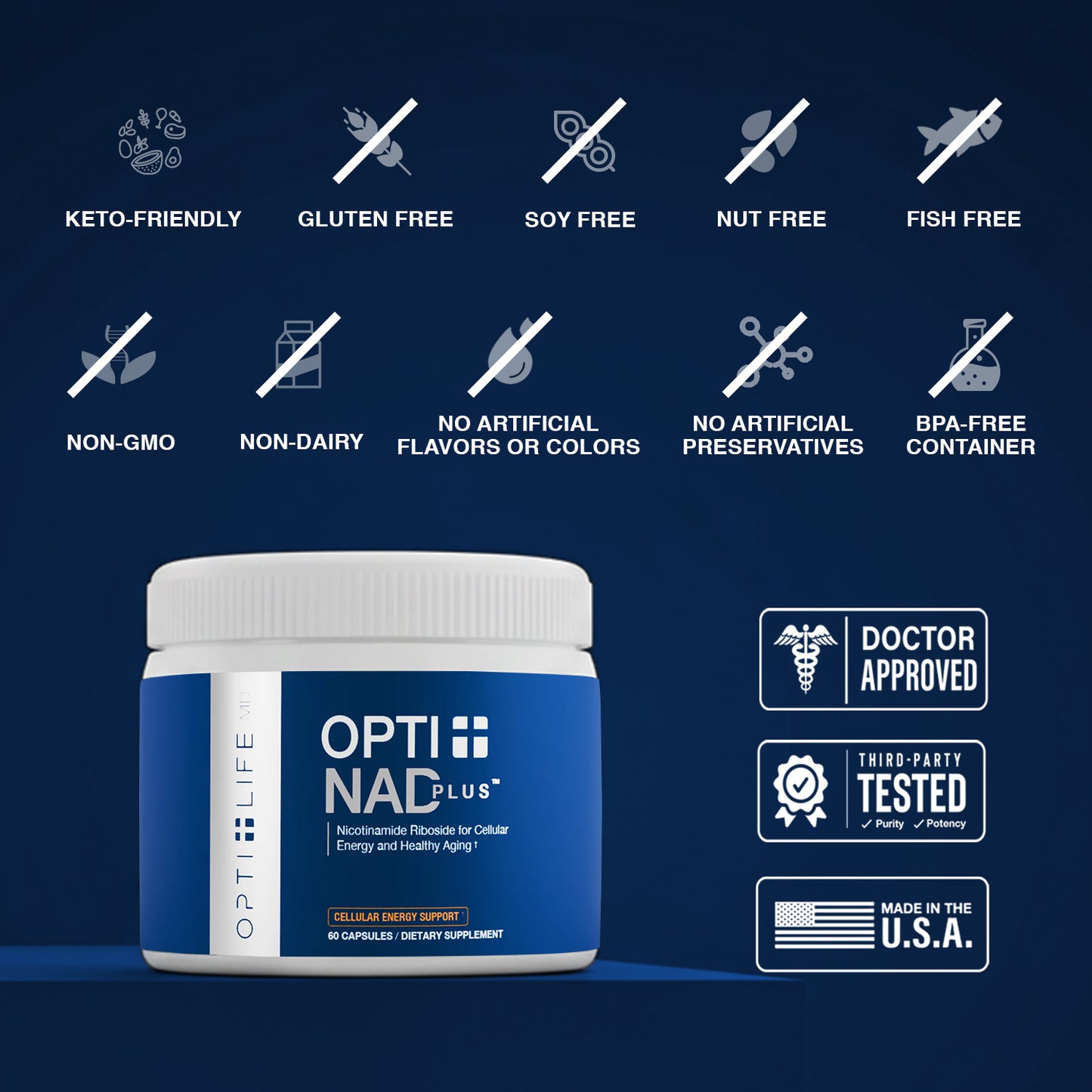 OPTI + NAD PLUS™ is proudly made in America in FDA-inspected facilities in accordance with the Current Good Manufacturing Practice (cGMP) regulations.